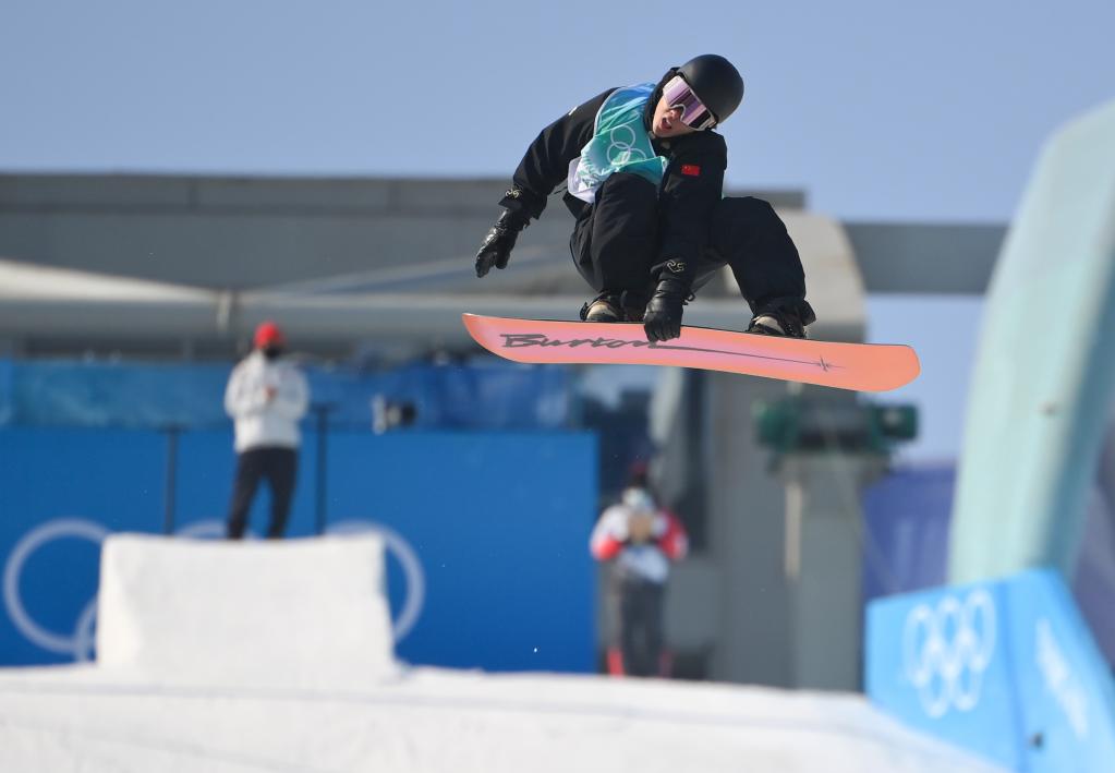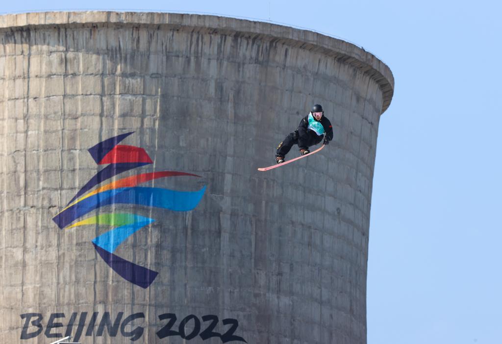 Su Yiming of China competes during the men's snowboard big air final of Beijing 2022 Winter Olympics at Big Air Shougang in Beijing, capital of China, Feb. 15, 2022. (Xinhua/Lan Hongguang)