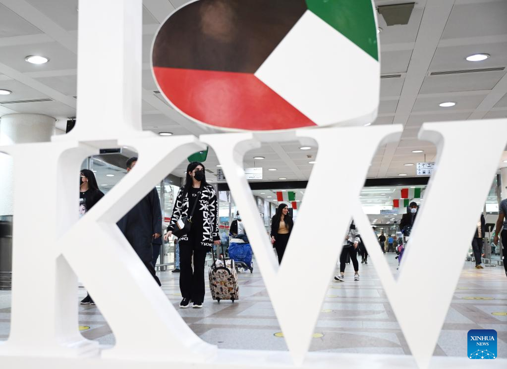 Passengers walk inside the departure hall of Kuwait International Airport in Farwaniya Governorate, Kuwait, Feb. 20, 2022. Kuwait decided to ease COVID-19 restrictions, the Kuwaiti government announced on Monday.