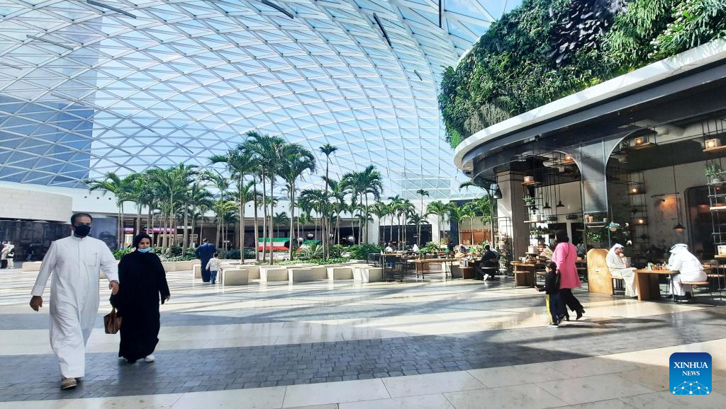 People walk inside a shopping mall in Farwaniya Governorate, Kuwait, Feb. 20, 2022. Kuwait decided to ease COVID-19 restrictions, the Kuwaiti government announced on Monday.