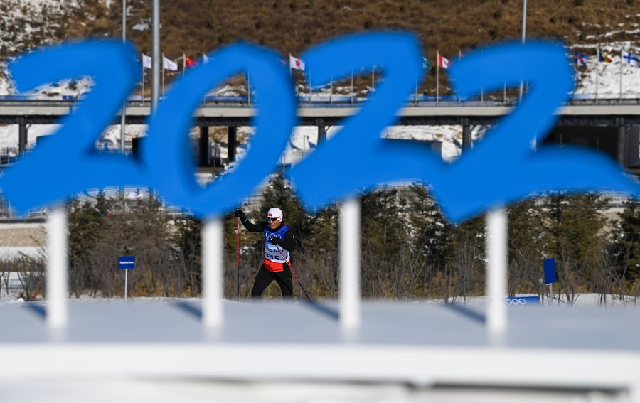 Torsongan Bullik participates in a trial skiing training of the cross-country skiing event ahead of the Beijing Winter Olympics at National Cross-Country Skiing Centre in Zhangjiakou, north China's Hebei Province, Jan. 28, 2022. (Xinhua/Hu Huhu)