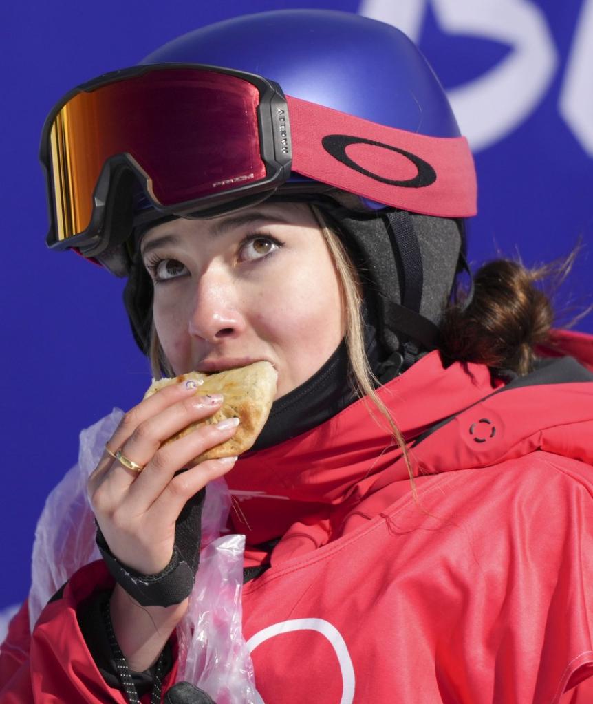 Gu Ailing of China reacts during women's freeski slopestyle qualification of Beijing 2022 Winter Olympics at Genting Snow Park in Zhangjiakou, north China's Hebei Province, Feb. 14, 2021. (Xinhua/Xue Yubin)