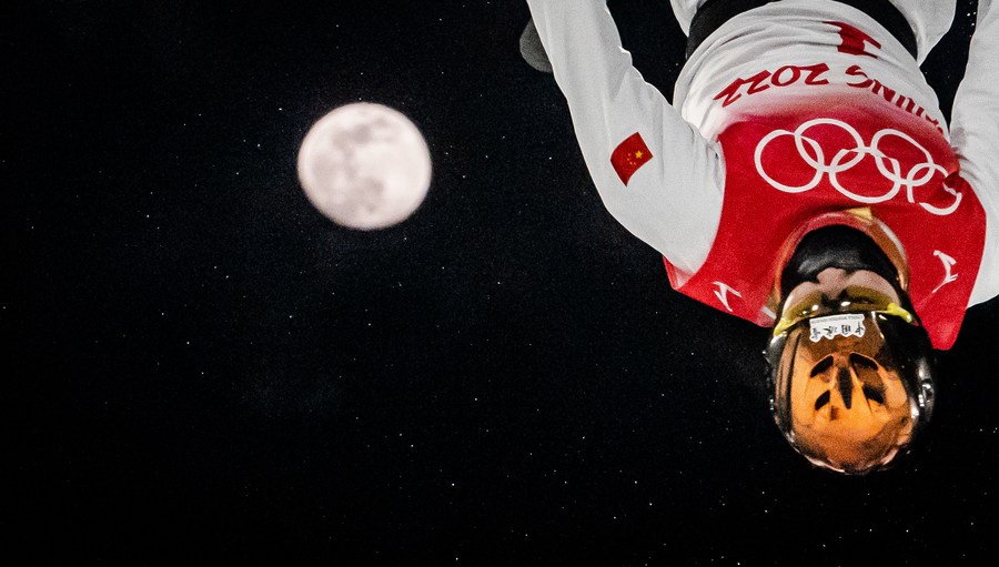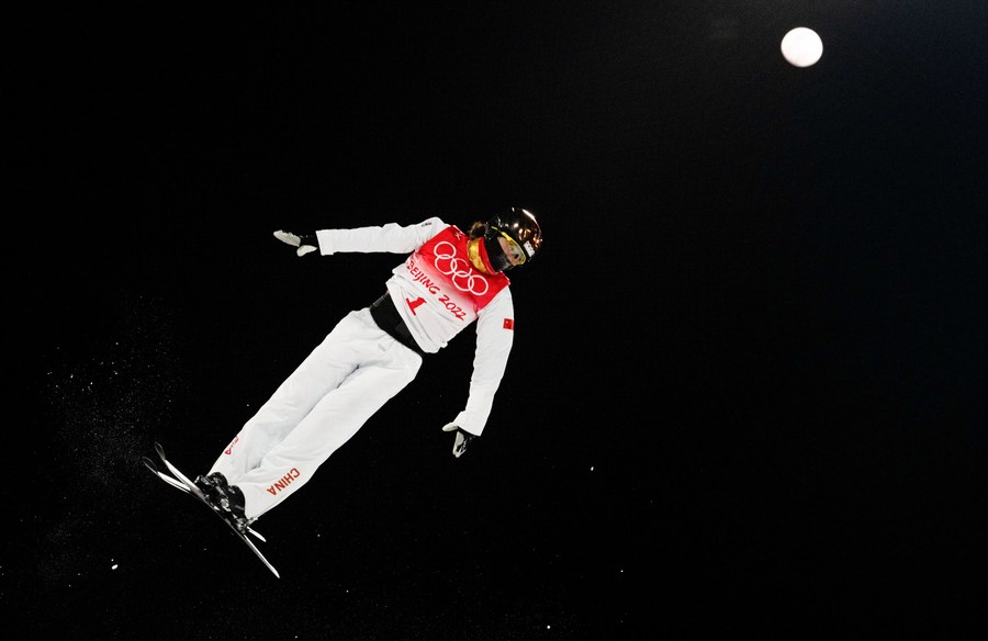 Xu Mengtao of China competes during the freestyle skiing women's aerials final of Beijing 2022 Winter Olympics at Genting Snow Park in Zhangjiakou, north China's Hebei Province, Feb. 14, 2022. (Xinhua/Xiao Yijiu)