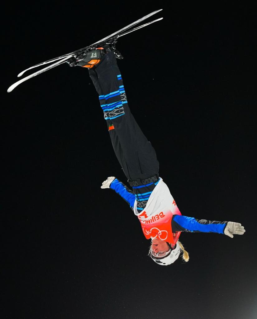 Megan Nick of the United States competes during the freestyle skiing women's aerials final of Beijing 2022 Winter Olympics at Genting Snow Park in Zhangjiakou, north China's Hebei Province, Feb. 14, 2022. (Xinhua/Mu Yu)