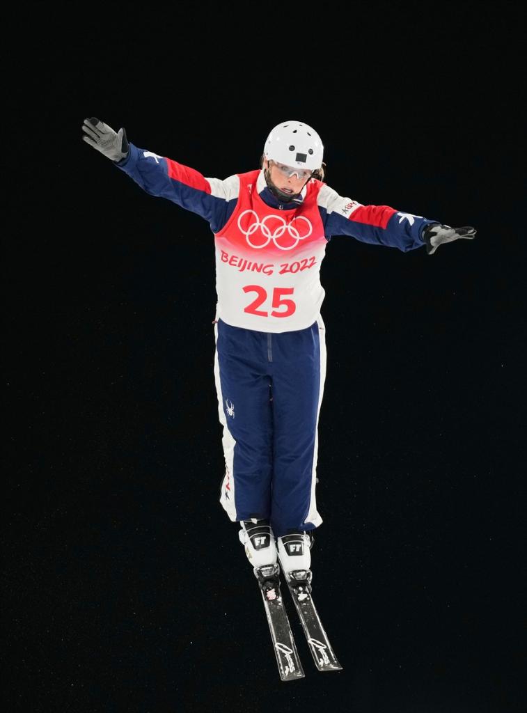 Megan Nick of the United States competes during the freestyle skiing women's aerials final of the Beijing 2022 Winter Olympics at Genting Snow Park in Zhangjiakou, north China's Hebei Province, Feb. 14, 2022. (Xinhua/Wang Haofei)