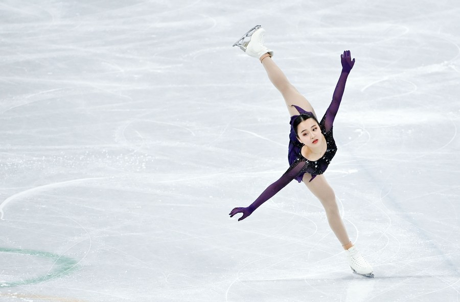BEIJING, Feb. 15 (Xinhua) -- The Russian Olympic Committee's trio of Kamila Valieva, Anna Shcherbakova and Alexandra Trusova occupied three positions of top four after Tuesday's short program at the Beijing 2022 Olympic Winter Games, while China's Zhu Yi finished the 27th to miss the women's free skate in two days.