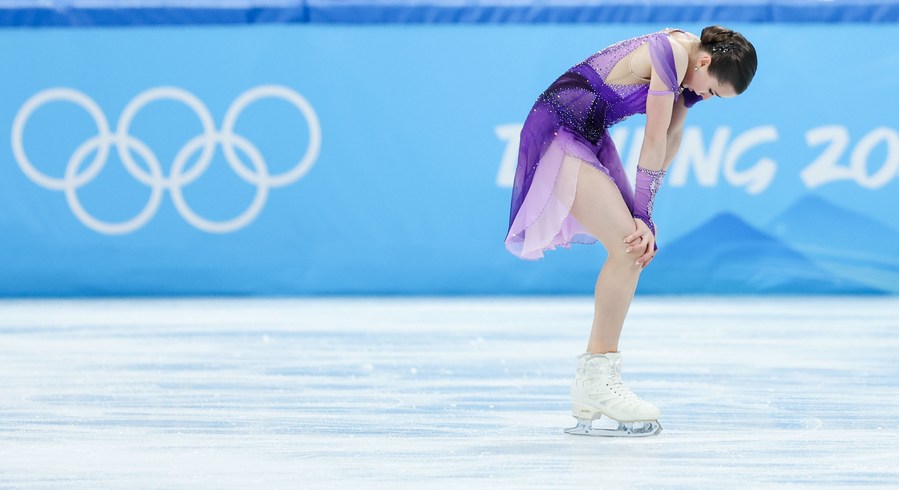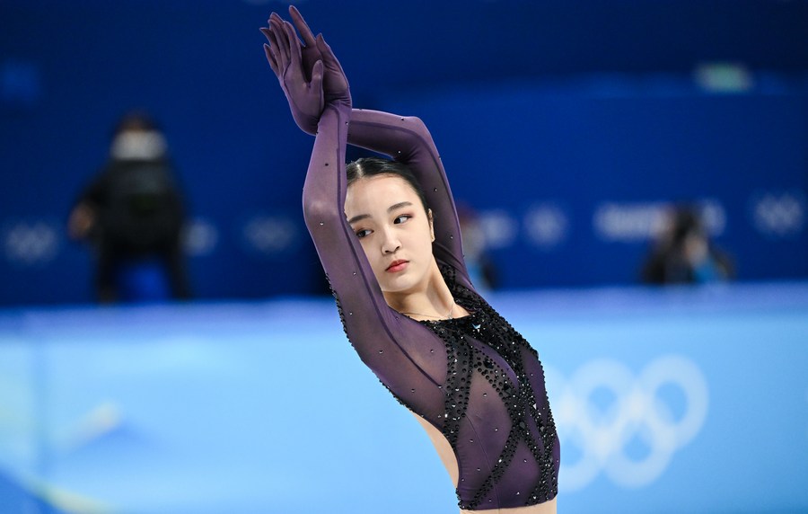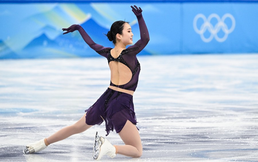 BEIJING, Feb. 16 (Xinhua) -- The Russian Olympic Committee's trio of Kamila Valieva, Anna Shcherbakova and Alexandra Trusova occupied three positions of top four after Tuesday's short program at the Beijing 2022 Olympic Winter Games, while China's Zhu Yi finished the 27th to miss the women's free skate in two days.