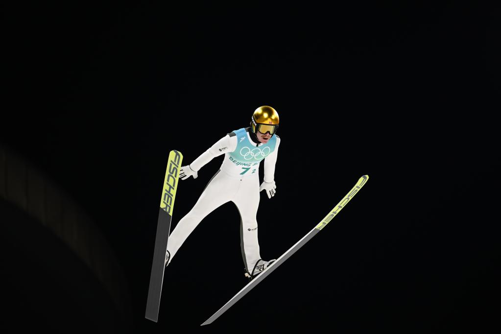 Robert Johansson of Norway competes during Ski Jumping Mixed Team 1st Round at the National Ski Jumping Centre in Zhangjiakou, north China's Hebei Province, Feb. 7, 2022. (Xinhua/Mu Yu)