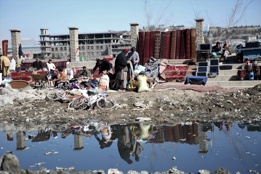 Photo taken on Feb. 12, 2022 shows a second-hand market in Kabul, capital of Afghanistan. (Photo by Saifurahman Safi/Xinhua)