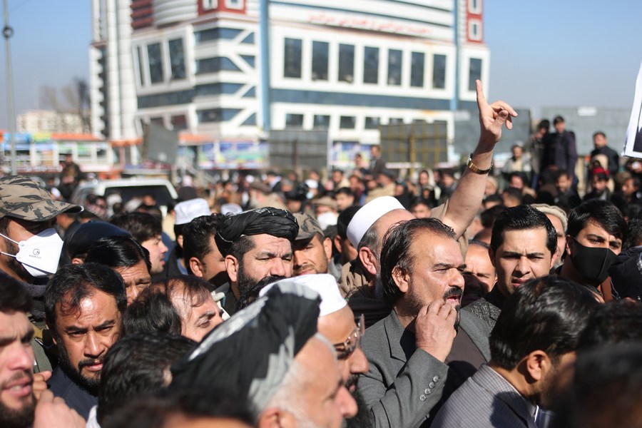 KABUL, Feb. 16 (Xinhua) -- Thousands of Afghans came to the street in the capital Kabul on Tuesday, condemning the recent U.S. decision regarding the frozen Afghan assets as unjust and open stealing, and calling on Washington to return the assets of more than 9 billion U.S. dollars to the war-torn country.