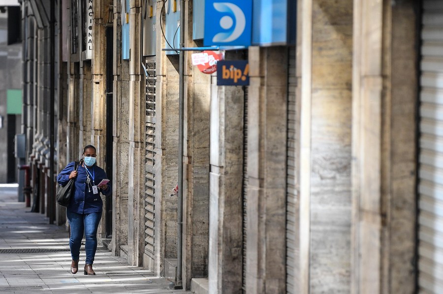 A pedestrian walks on a street in Santiago, Chile, March 27, 2021. (Photo by Jorge Villegas/Xinhua)
