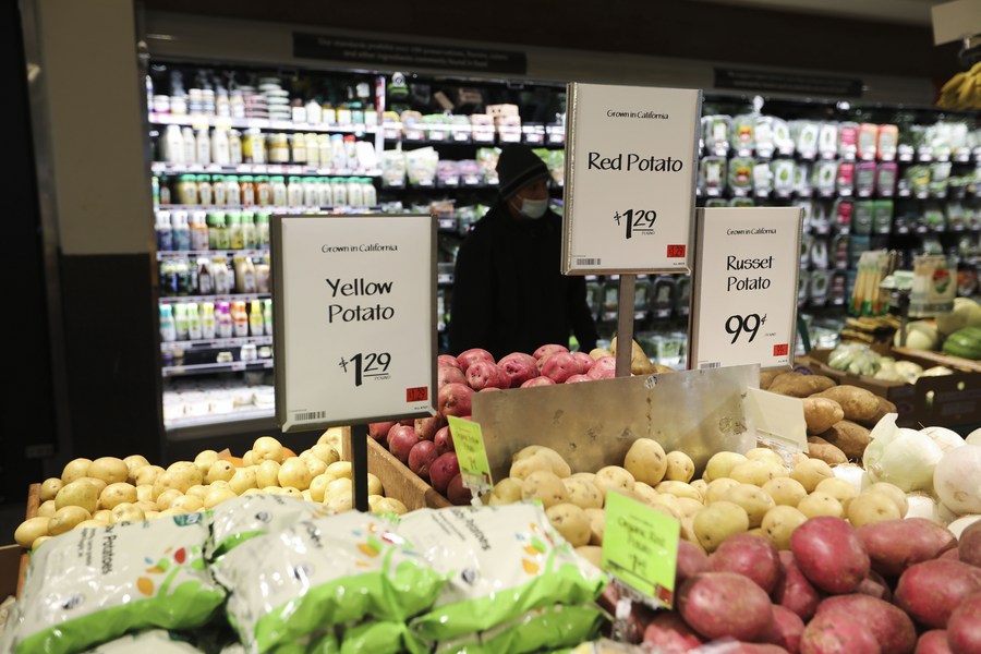 A man shops at a grocery store in New York, the United States, Dec. 7, 2021. (Xinhua/Wang Ying)