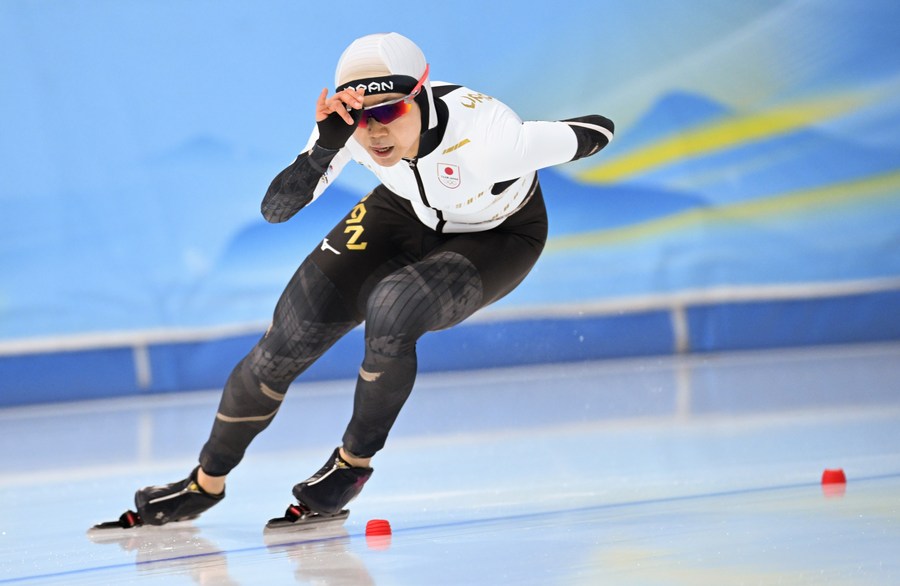 Takagi Miho of Japan competes during the speed skating women's 1,000m at the National Speed Skating Oval in Beijing, capital of China, Feb. 17, 2022. (Xinhua/Wu Wei)