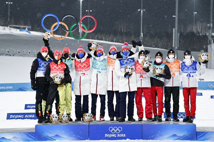 BEIJING, Feb. 18 (Xinhua) -- Norway won the Nordic combined large hill/4x5km team gold at the Beijing 2022 Olympic Winter Games here on Thursday.