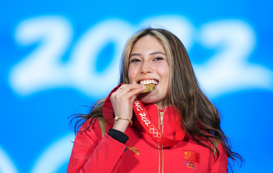 After a glittering year of 2021 with two world championships gold medals and a bronze, Gu showcased her admirable talent on the biggest winter sports stage as the first female athlete to land a right double cork 1440 trick.