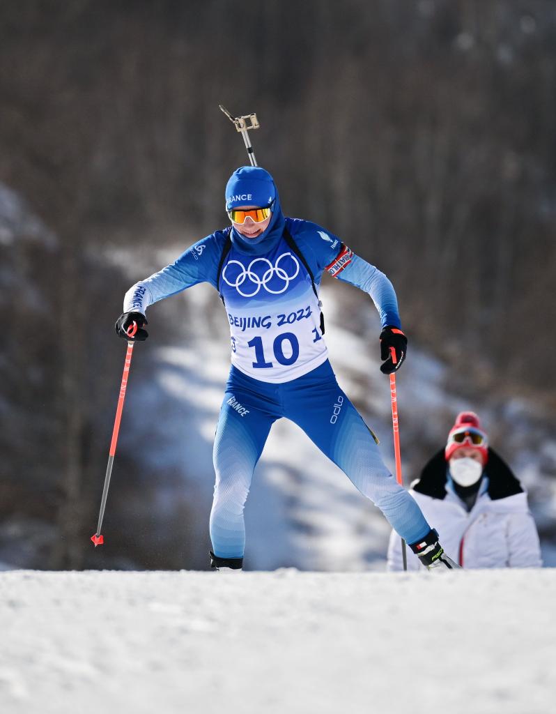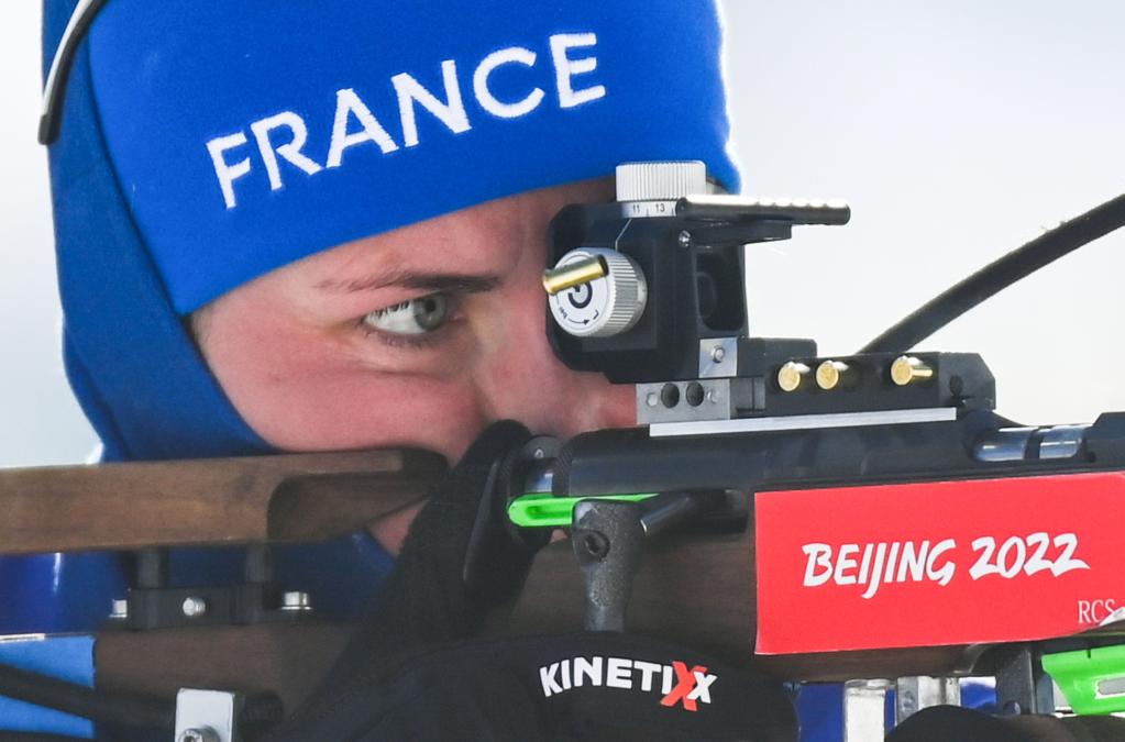 Justine Braisaz-Bouchet of France competes during biathlon women's 12.5km mass start of Beijing 2022 Winter Olympics at National Biathlon Centre in Zhangjiakou, north China's Hebei Province, Feb. 18, 2022. (Xinhua/Mu Yu)