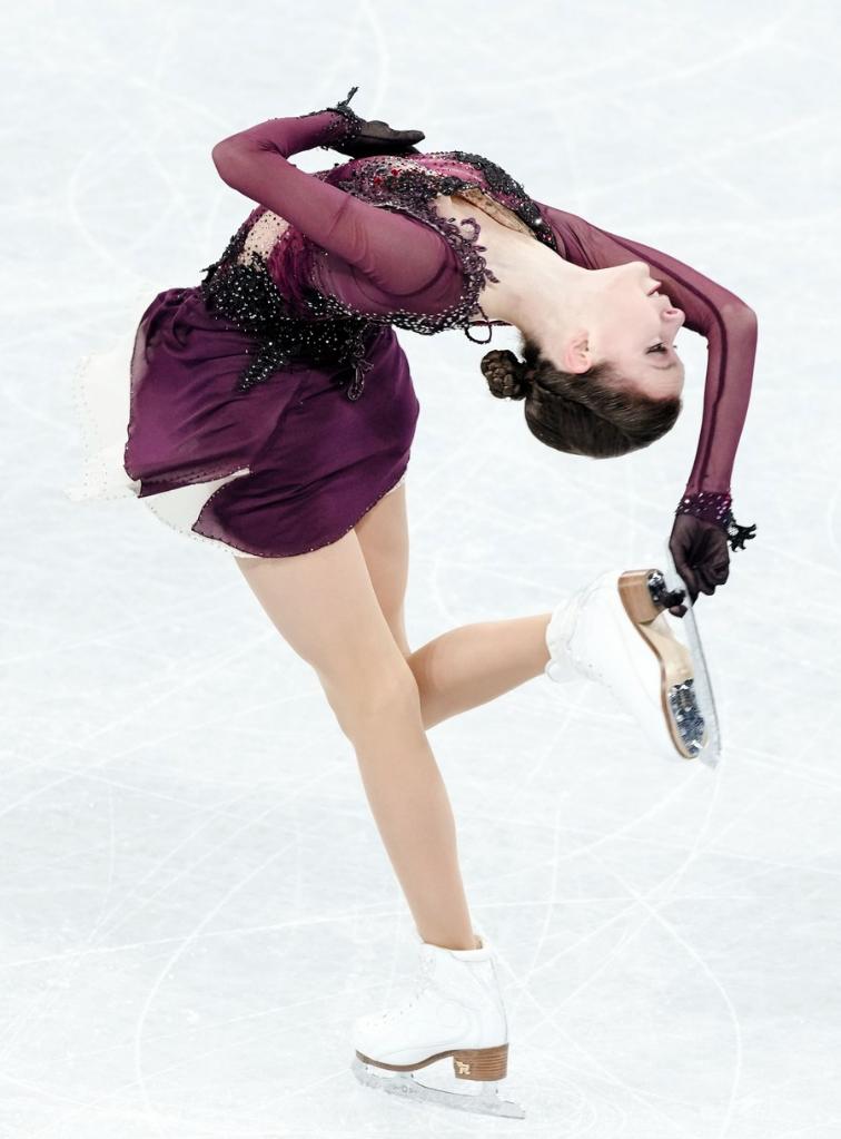 Another ROC figure skater Trusova came up with the highest free skate score of 177.13 on Thursday after the 17-year-old featured five quads of four different rotations, bringing her total score to 251.73 for the silver.