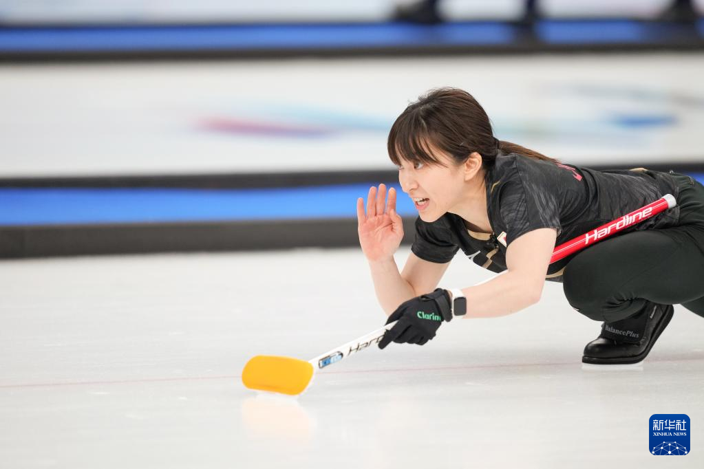 Suzuki Yumi of Japan competes during curling woman's semifinal of the Beijing 2022 Winter Olympics between Japan and Switzerland at the National Aquatics center in Beijing, China, Feb.18, 2022. (Xinhua/Zhou Mi)