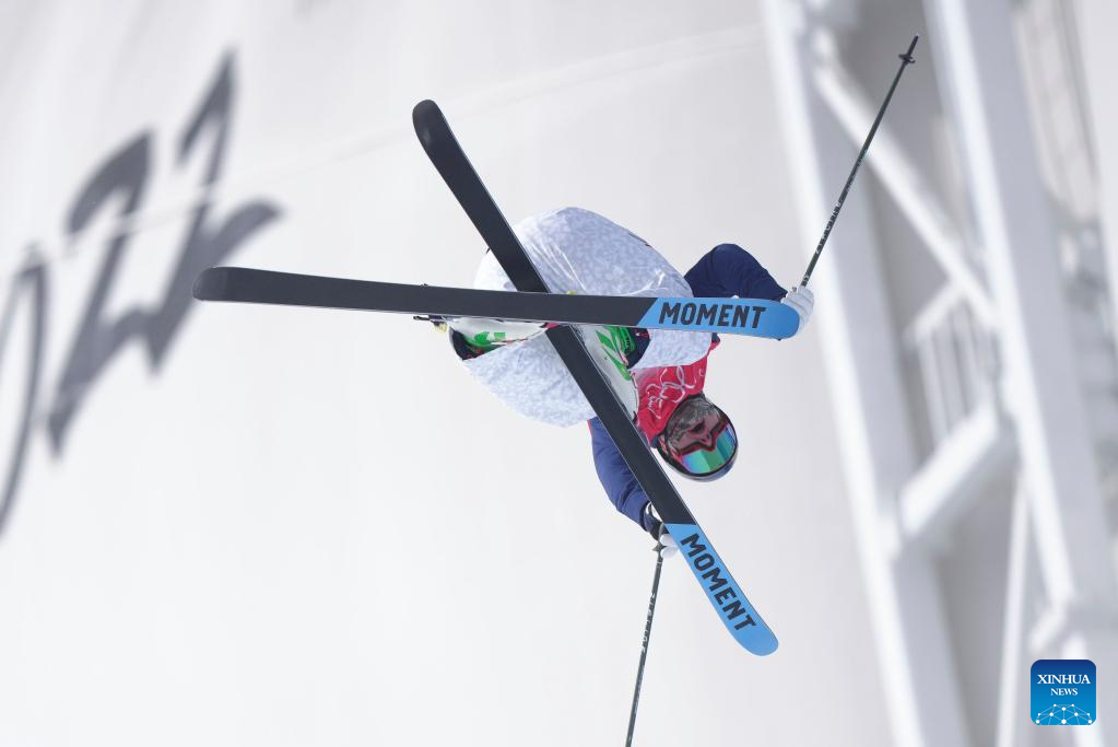 Robin Bright of Switzerland competes during the freestyle skiing men's freeski halfpipe final of Beijing 2022 Winter Olympics at Genting Snow Park in Zhangjiakou, north China's Hebei Province, Feb. 19, 2022. (Xinhua/Xue Yubin)