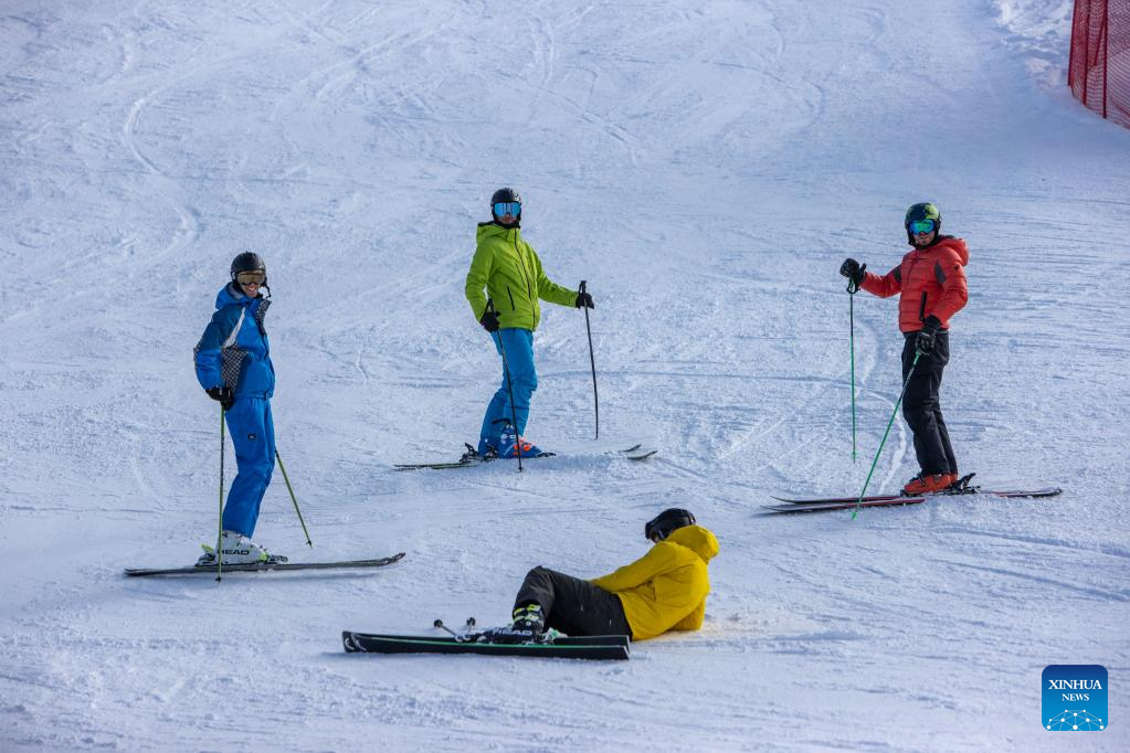 People ski at an alpine skiing resort in Cortina d'Ampezzo, Italy, Feb. 18, 2022. Italian cities Milan and Cortina d'Ampezzo were appointed hosts of the 2026 Winter Olympic Games at the 134th session of the International Olympic Committee (IOC) on June 24, 2019. The 2026 Winter Olympic Games will be the third time Italy hosts the Winter Olympics, following Turin in 2006 and Cortina d'Ampezzo in 1956. (Xinhua/Liu Yongqiu)
