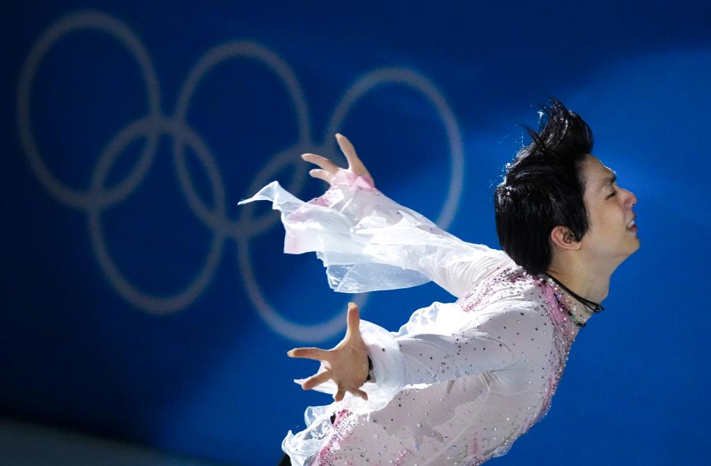 Hanyu Yuzuru of Japan performs during the figure skating gala event of the Beijing 2022 Winter Olympics at Capital Indoor Stadium in Beijing, capital of China, Feb. 20, 2022. (Xinhua/Wang Fei)