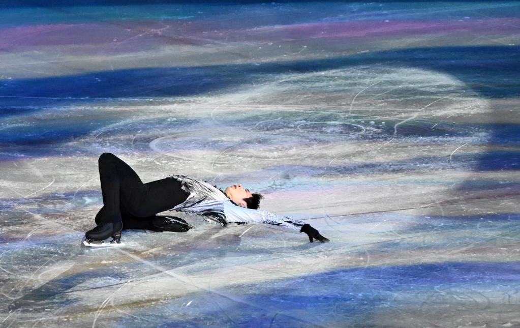 Hanyu Yuzuru of Japan performs during the figure skating gala event of the Beijing 2022 Winter Olympics at Capital Indoor Stadium in Beijing, capital of China, Feb. 20, 2022. (Xinhua/Zhang Yuwei)