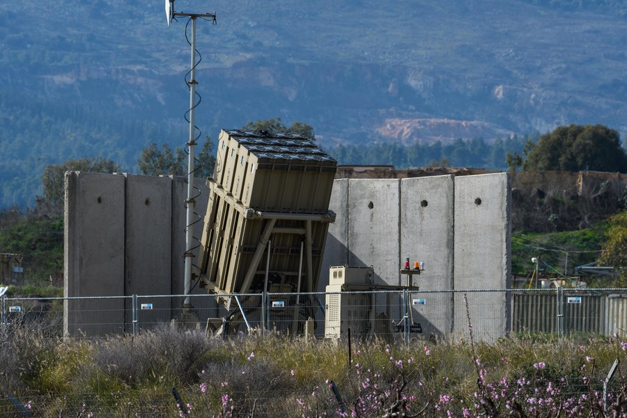 Photo taken shows an Iron Dome defense system battery, designed to intercept and destroy incoming short-range rockets and artillery shells near the border with Lebanon in northern Israel on Feb. 18, 2022. (Ayal Margolin/JINI via Xinhua)■