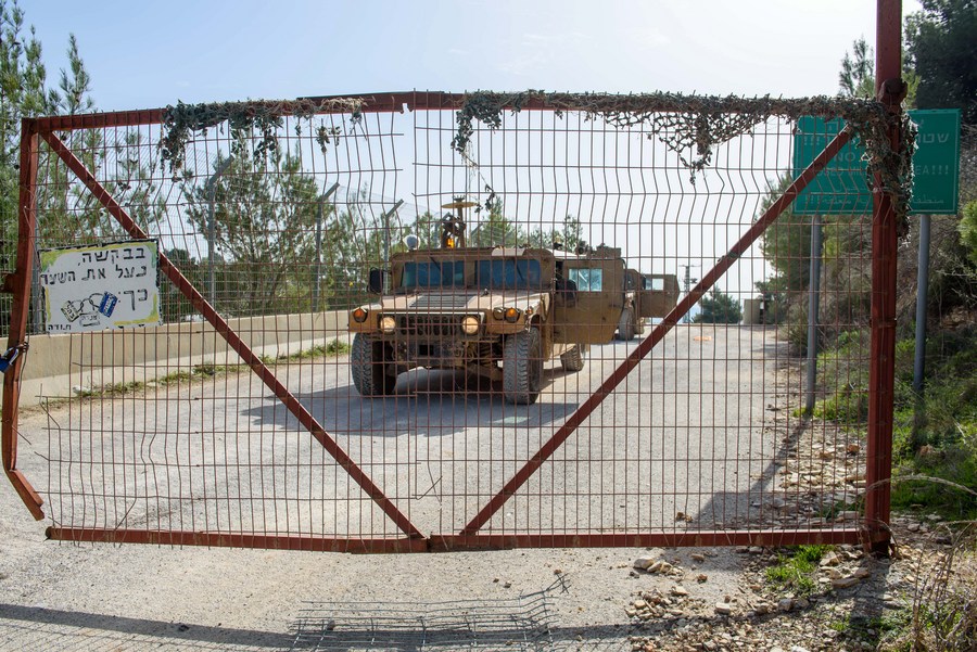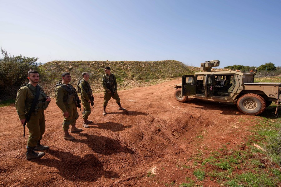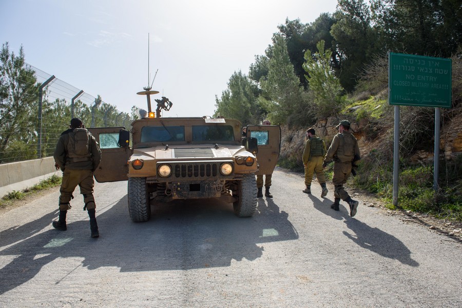 Israeli soldiers patrol the border area with Lebanon in northern Israel on Feb. 18, 2022. (Ayal Margolin/JINI via Xinhua)