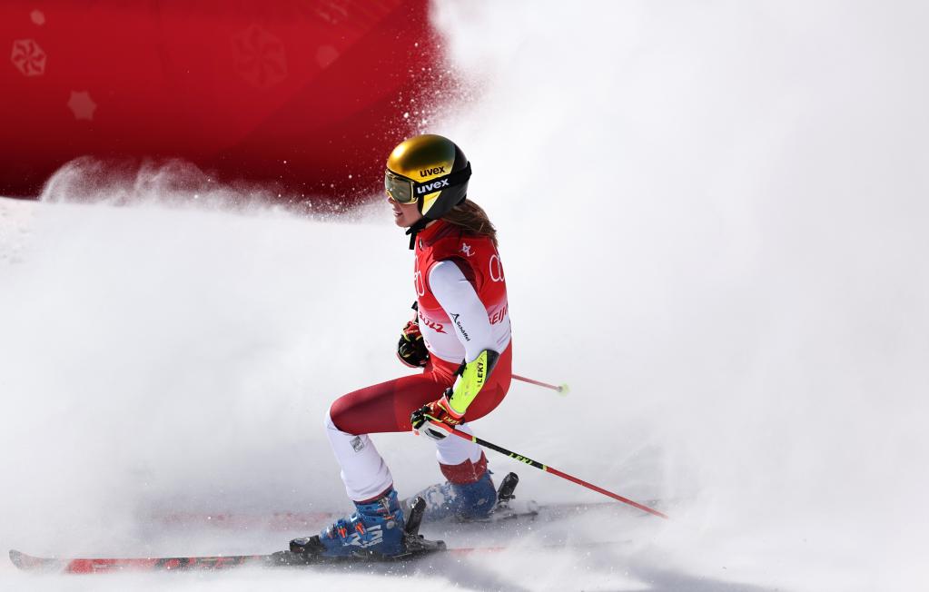 Katharina Liensberger of Austria competes during the alpine skiing mixed team parallel final of Beijing 2022 Winter Olympics at National Alpine Skiing Centre in Yanqing District, Beijing, capital of China, Feb. 20, 2022. (Xinhua/Chen Bin)