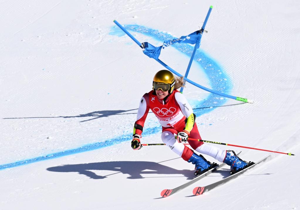 Katharina Liensberger of Austria competes during the alpine skiing mixed team parallel final of Beijing 2022 Winter Olympics at National Alpine Skiing Centre in Yanqing District, Beijing, capital of China, Feb. 20, 2022. (Xinhua/Zhang Chenlin)