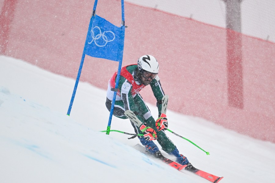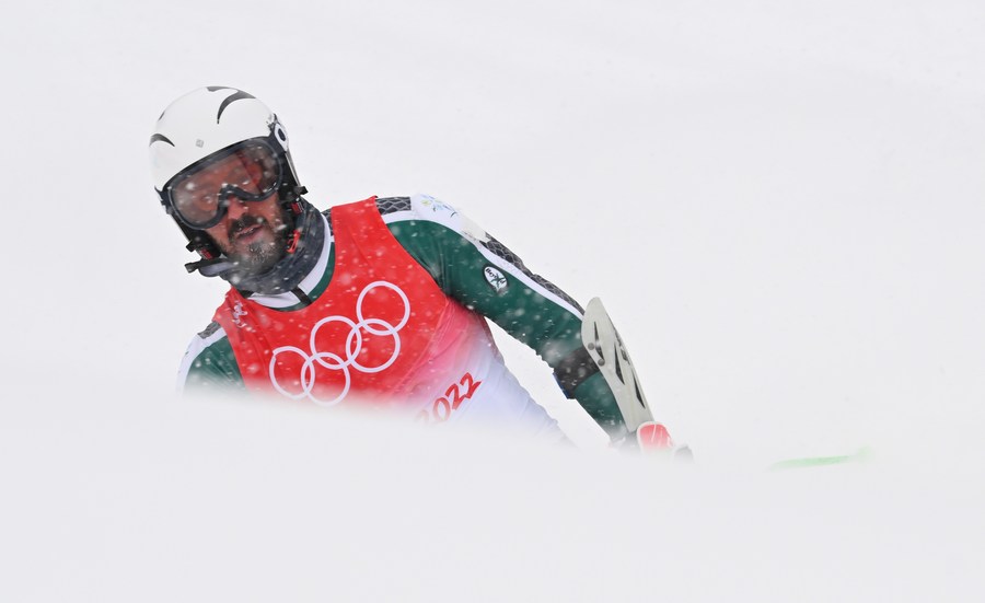 Fayik Abdi of Saudi Arabia competes during the Alpine skiing men's giant slalom at National Alpine Skiing Center in Yanqing District, Beijing on Feb. 13, 2022. (Xinhua/Chen Yichen)