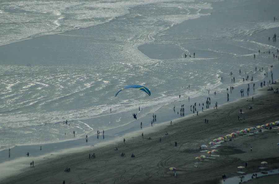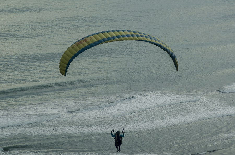 JAKARTA, Feb. 22 (Xinhua) -- Need some fresh air? Enjoy seaside paragliding and sunset with us in Indonesia's Yogyakarta.