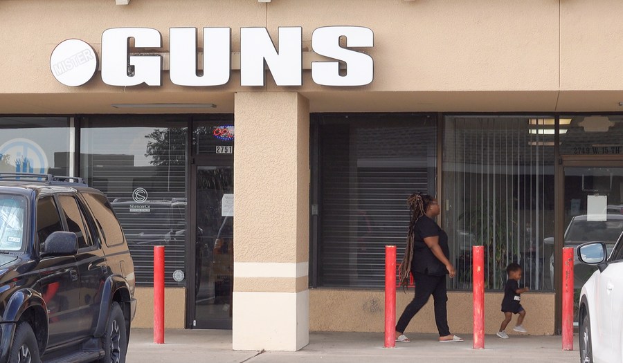 Photo taken on Aug. 31, 2021 shows a gun shop in Plano, a suburban city of Dallas, Texas, the United States. (Photo by Tian Dan/Xinhua)