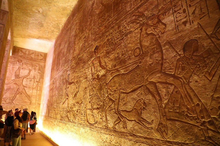 The temple is in a position where the inner statues of the ancient Egyptian King Ramses II and the sun gods gleam twice each year on Feb. 22 and Oct. 22 under the direct sunlight that illuminate the sanctuary.