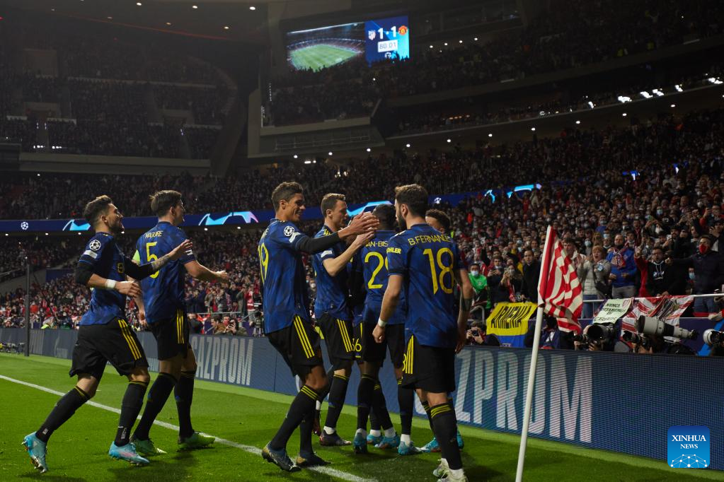MADRID, Feb. 23 (Xinhua) -- Anthony Elanga's 80th minute goal gave Manchester United a 1-1 draw away to Atletico Madrid in the first leg of their UEFA Champions League last-16 tie on Wednesday night.