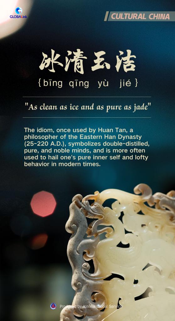 BEIJING, Feb. 24 (Xinhua) -- The Chinese idiom "as clean as ice and as pure as jade", or "Bing Qing Yu Jie" in Chinese, symbolizes double-distilled, pure, and noble minds.