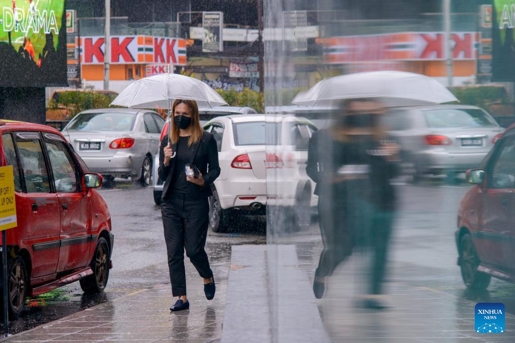 A woman wearing face mask walks on a street in Kuala Lumpur, Malaysia, Feb. 24, 2022. Malaysia reported 31,199 new COVID-19 infections in the highest daily spike as of midnight Wednesday, bringing the national total to 3,305,157, according to the health ministry. (Photo by Chong Voon Chung/Xinhua)