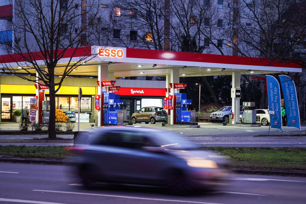 A vehicle drives past a gas station in Berlin, capital of Germany, Feb. 11, 2022. (Photo by Stefan Zeitz/Xinhua)