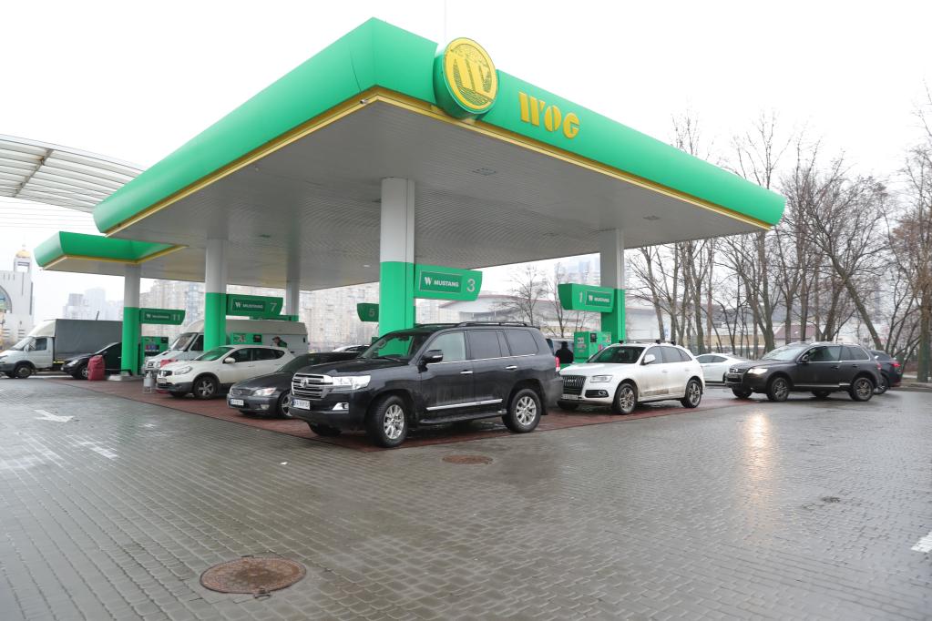 Vehicles queue up to fill gasoline at a gas station in Kiev, Ukraine, Feb. 24, 2022. (Xinhua/Li Dongxu)