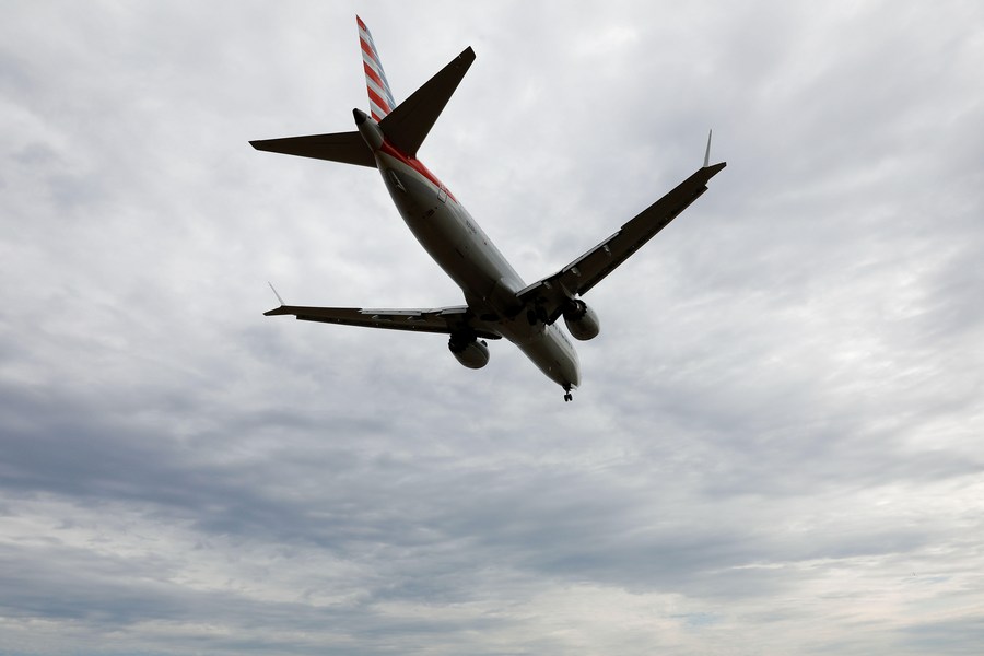 An American Airlines Boeing 737 Max 8 aircraft from Los Angeles approaches to land at the Ronald Reagan Washington National Airport in Washington D.C., the United States on March 13, 2019. (Xinhua/Ting Shen)