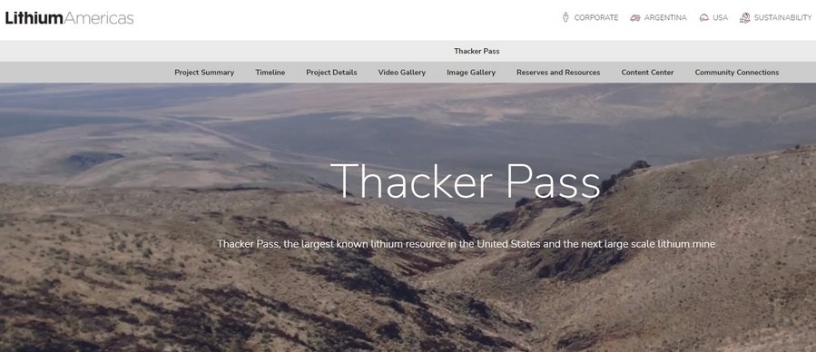 The screenshot taken from the website of Lithium Americas Corporations on Feb. 24, 2022 shows its headline photo promoting Thacker Pass as "the largest known lithium resource in the United States and the next large scale lithium mine." (Xinhua)
