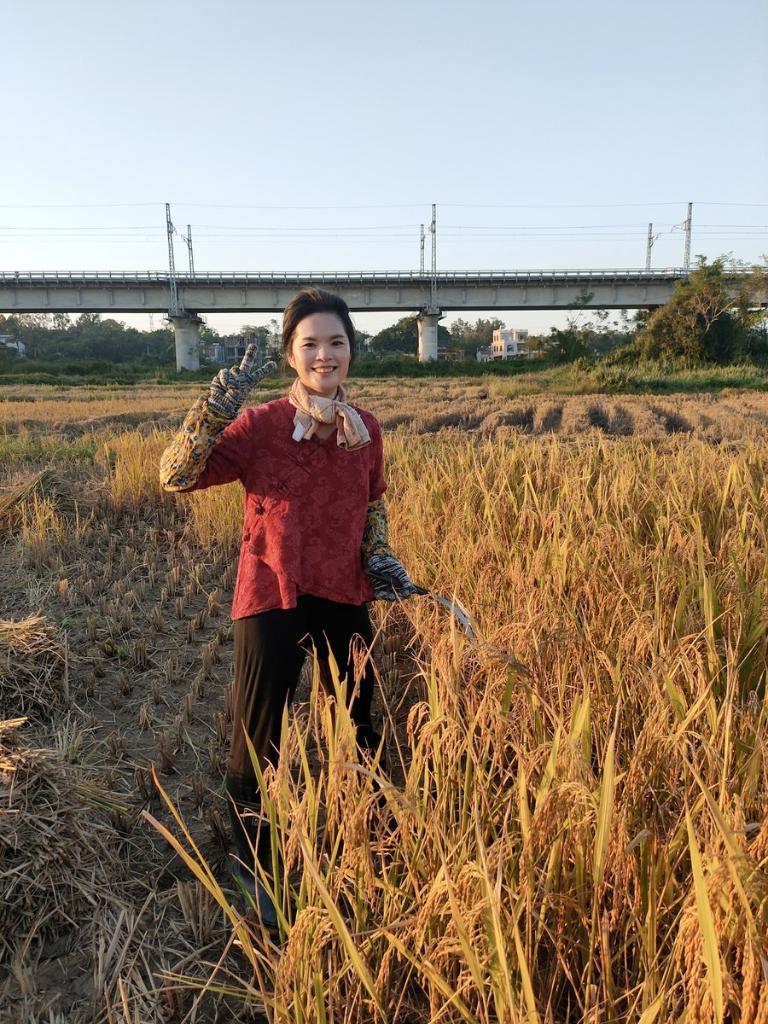 Wu Shaoyu poses for a photo in the rice field in Xuelan Village in Danzhou, south China's Hainan Province, Nov. 6, 2021. (Xinhua)