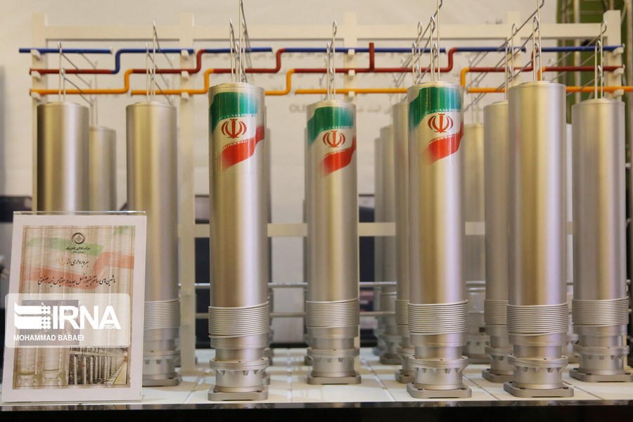 An array of centrifuges shown on an online exhibition of Iran's nuclear achievements held on April, 10, 2021. (Photo provided by IRNA news agency)