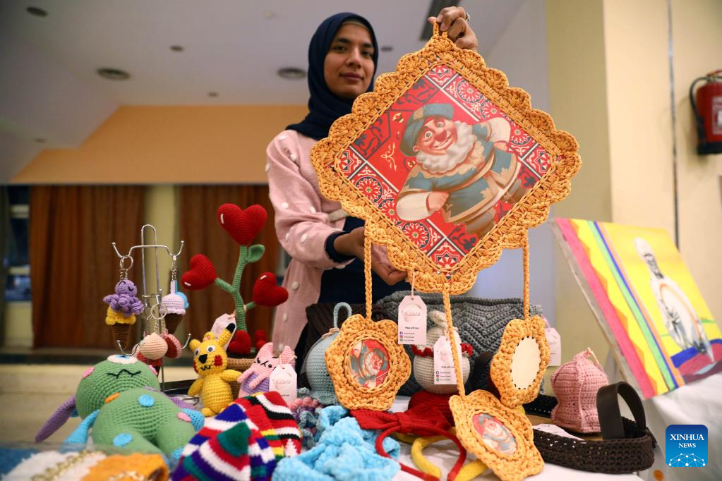ASWAN, Egypt, Feb. 26 (Xinhua) -- A variety of colorful crocheted items including teddy bears, coasters, handbags, hats, scrunchies, vases with heart-shaped flowers, among many others, are displayed in a hall in Upper Egypt's charming city of Aswan.