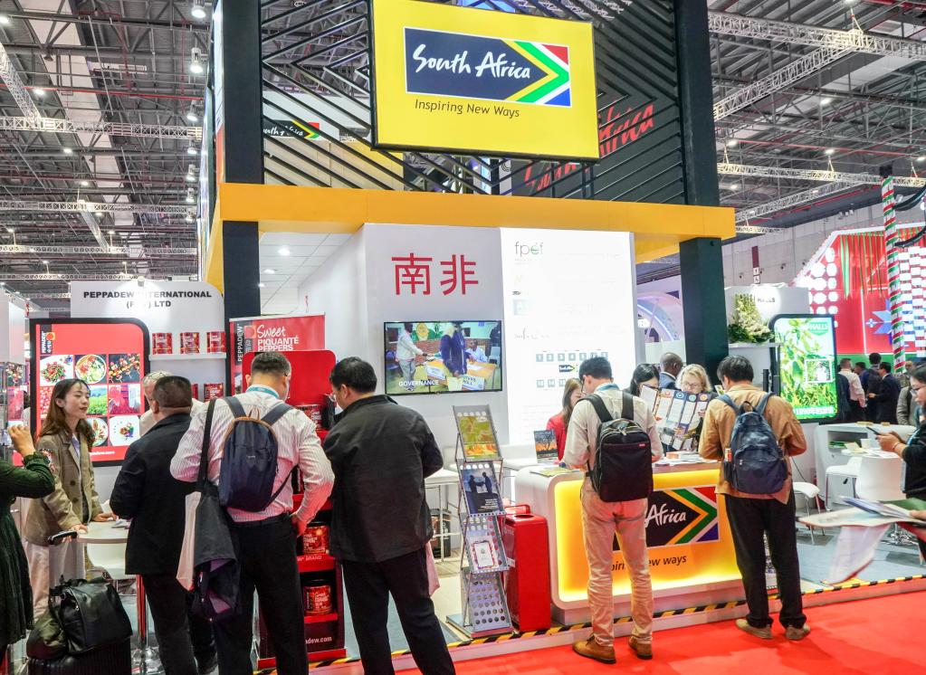 This file photo shows people visiting the South Africa pavilion during the second China International Import Expo (CIIE) in Shanghai, east China, Nov. 7, 2019. (Xinhua/Yin Gang)