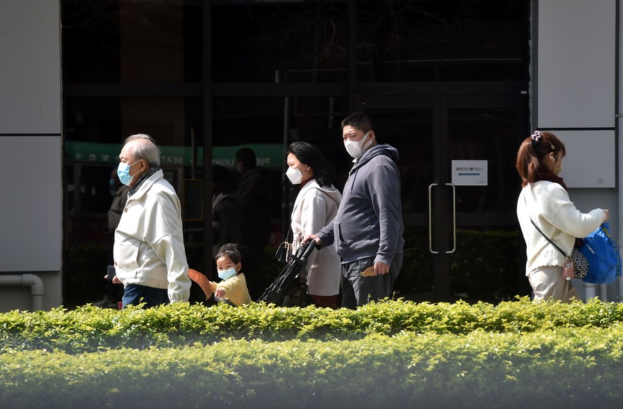 People wearing face masks walk on a street in Hong Kong, south China, Feb. 24, 2022. (Xinhua/Lo Ping Fai)