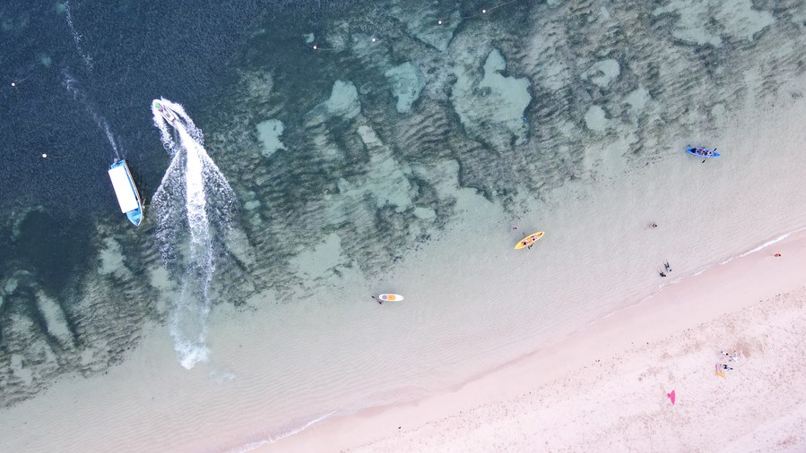 Aerial photo taken on Dec. 18, 2021 shows the Nusa Dua Beach in Bali, Indonesia. (Xinhua/Xu Qin)