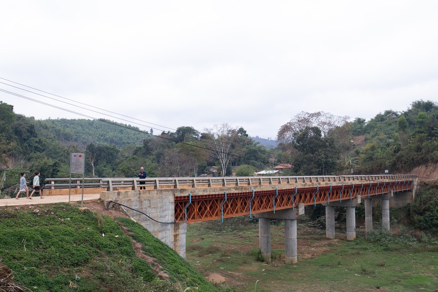 Photo taken on Feb. 16, 2022, shows a modern bridge built with the aid from China at the Ban Xor village in northern Laos. (Photo by Kaikeo Saiyasane/Xinhua)