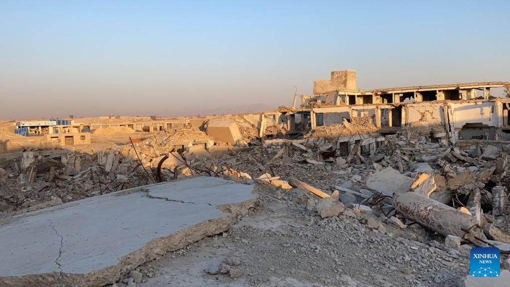 Photo taken on Feb. 27, 2022 shows a bazaar destroyed in U.S. air strikes in Sangin district of Helmand Province, Afghanistan. The U.S.-led coalition forces may have run from Afghanistan last year, but the indiscriminate killing and widespread atrocities committed against the Afghan people during the occupation will haunt the victims and their families for years. (Photo by Arghand/Xinhua)