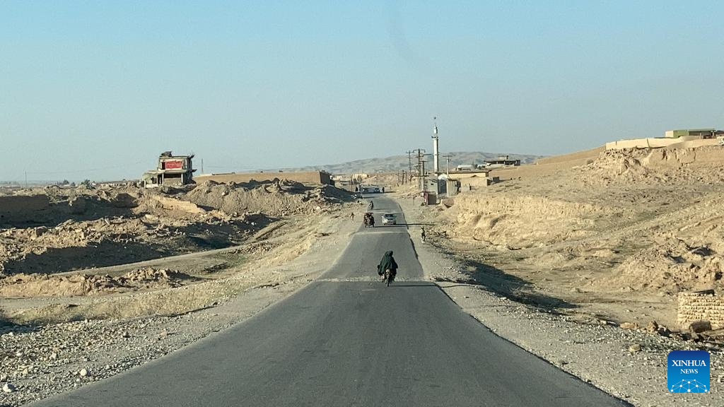Photo taken on Feb. 27, 2022 shows a road in Sangin district of Helmand Province, Afghanistan. The U.S.-led coalition forces may have run from Afghanistan last year, but the indiscriminate killing and widespread atrocities committed against the Afghan people during the occupation will haunt the victims and their families for years. (Photo by Arghand/Xinhua)