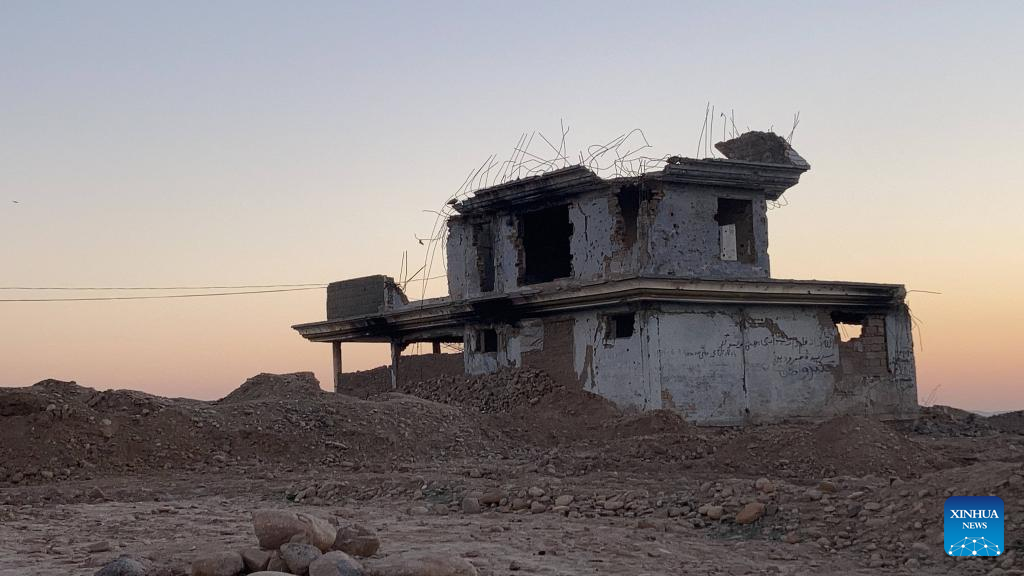 Photo taken on Feb. 27, 2022 shows a damaged building in Sangin district of Helmand Province, Afghanistan. The U.S.-led coalition forces may have run from Afghanistan last year, but the indiscriminate killing and widespread atrocities committed against the Afghan people during the occupation will haunt the victims and their families for years. (Photo by Arghand/Xinhua)